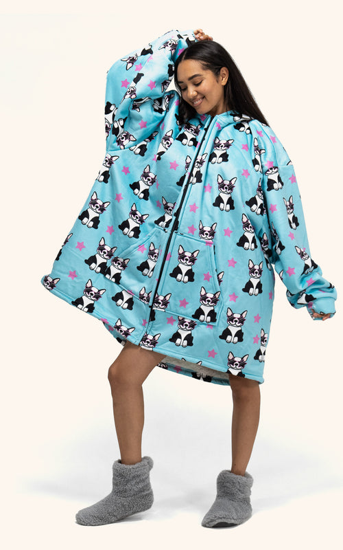 Uniwersalny rozmiar jest odpowiedni dla dzieci w każdym wieku. Konstrukcja umożliwia swobodne poruszanie się, jednocześnie zapewniając błogi komfort podczas wylegiwania się na sofie. Dzięki głębokiej przedniej kieszeni i kapturowi głowa i dłonie także mają zapewnioną wygodę. Dostępna w rozmiarach dla dorosłych i dzieci. To doskonały wybór dla całej rodziny.