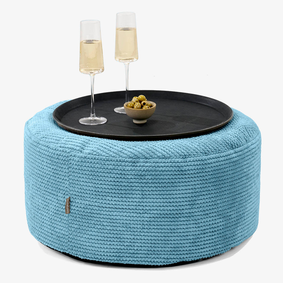 Lounge Pug Ottoman Puff z Talerzem do Serwowania Pom Pom Morski błękit– Big Bertha Original Poland