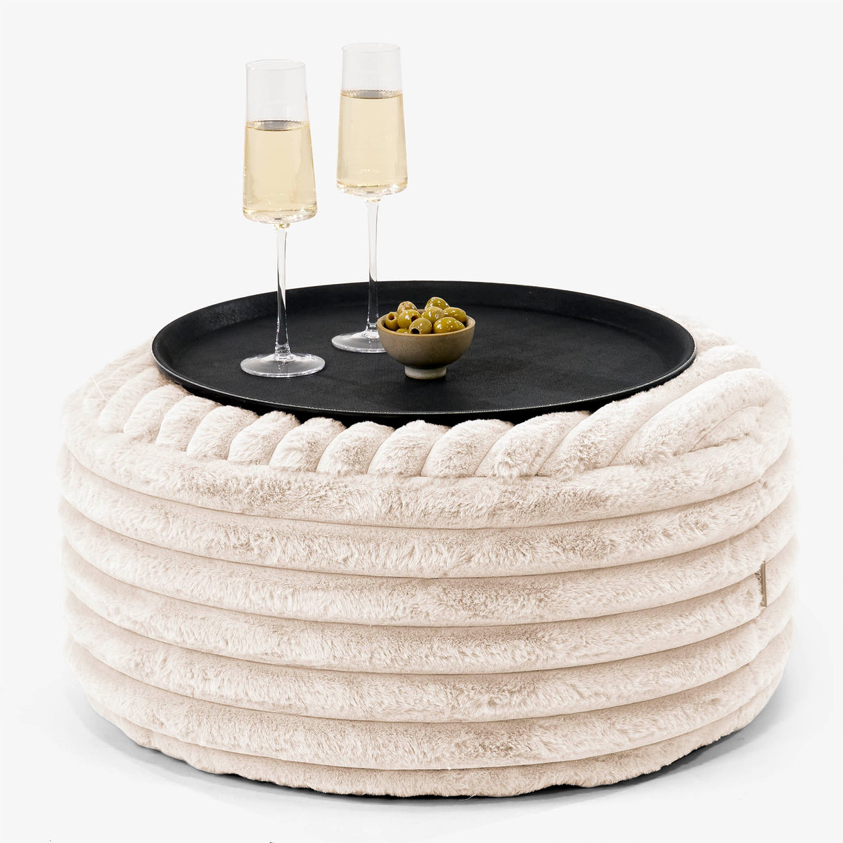 Lounge Pug Ottoman Puff z Talerzem do Serwowania Sztruks ultra plusz Śmietanka– Big Bertha Original Poland