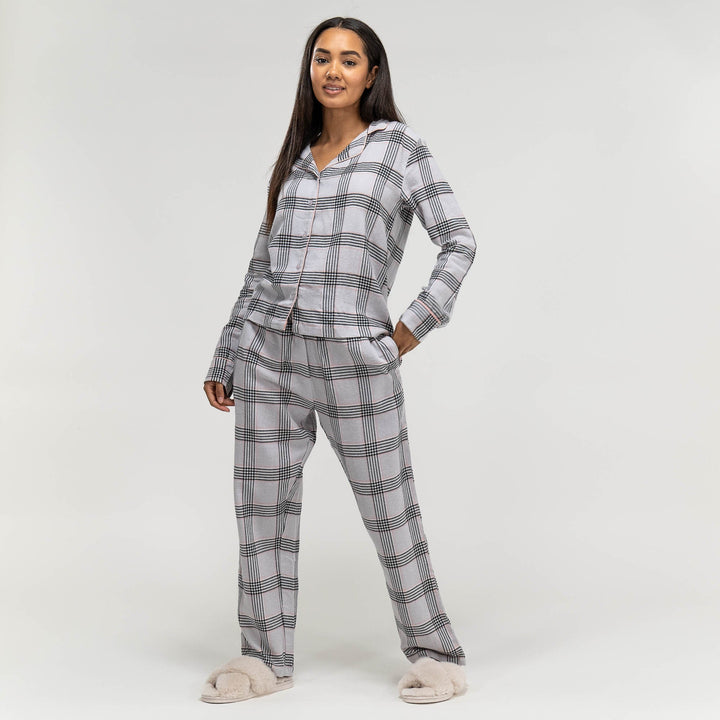 Piżama damska Kratka bawełniana, rozmiar: XS-L, Szarość– Big Bertha Original Poland