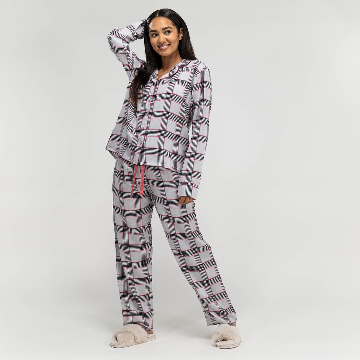Piżama damska Kratka bawełniana Róż, rozmiar: XS-L, Róż / Szarość– Big Bertha Original Poland