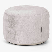 Lounge Pug Podnóżek mały okrągły Sztuczne futerko z królika Jasna szarość– Big Bertha Original Poland