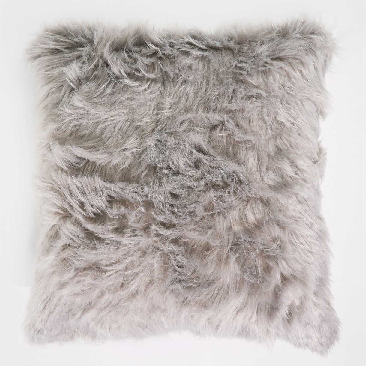 Lounge Pug Poszewka na poduszkę ozdobna XL 70 x 70cm Mongolskie Sztuczne Futro Szarość– Big Bertha Original Poland